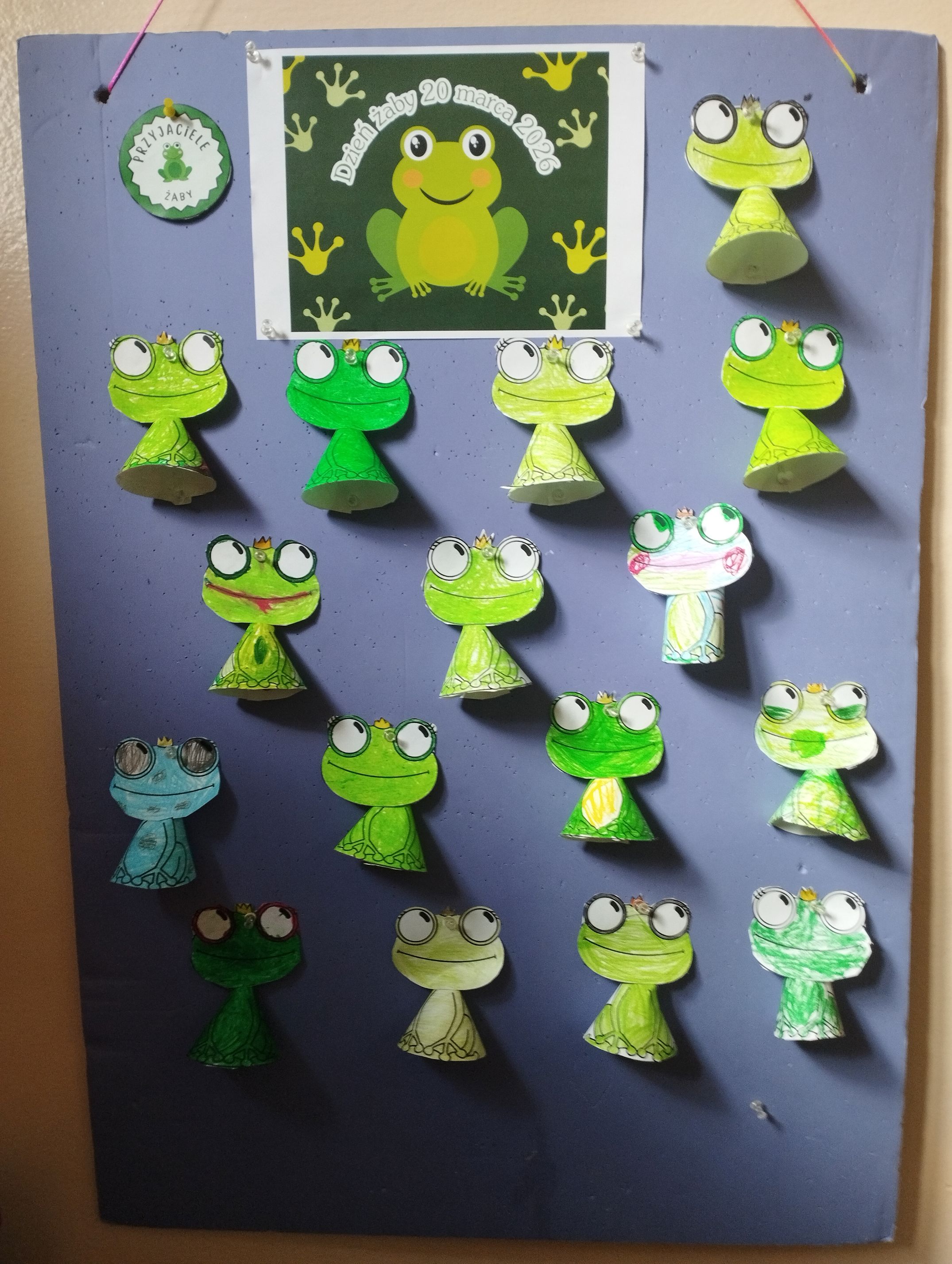 Z tej okazji dzieci z klasy 1a podczas zajęć w świetlicy poznawały cykl życia żaby. Rozwiązywały zagadki, quizy i labirynty, a także brały udział w zabawach ruchowych. Za aktywne wykonanie wszystkich zadań uczniowie zdobyli odznakę „Przyjaciela Żab”. Na zakończenie zajęć dzieci wykonały piękne prace plastyczne, które można podziwiać w sali A. Dbajmy o naturę – to nasza wspólna odpowiedzialność!