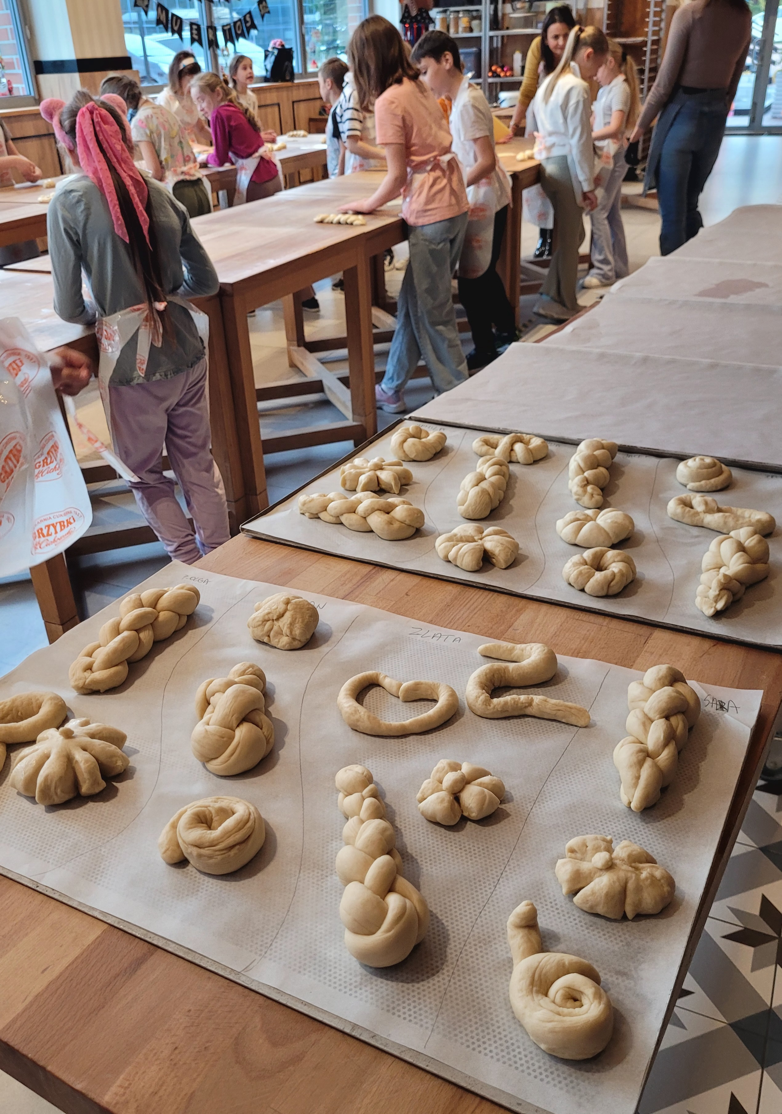 Dnia 28.10 klasa 3a uczestniczyła w warsztatach piekarniczych w Akademii Piekarza. Uczniowie poznali proces produkcji pieczywa i podglądali pracę piekarzy w piekarni Grzybki. Dzieci samodzielnie zrobiły chałki, precle i bułeczki z ciasta drożdżowego oraz skomponowały pizzę według własnego upodobania. Uczniowie wrócili najedzeni i zachwyceni.