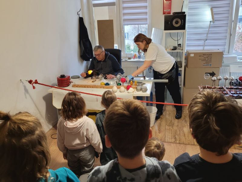 Dnia 17 listopada uczniowie klasy 3a odwiedzili fabrykę bombek. Dzieci poznały proces wytwarzania tradycyjnych szklanych ozdób choinkowych - zobaczyły jak wydmuchuje się kształty, srebrzy i farbuje bombki. Następnie trzecioklasiści samodzielnie ozdabiali kolorowym brokatem złote kule. Piękne i niepowtarzalne bombki sprawią, że choinki będą niezwykle oryginalne.