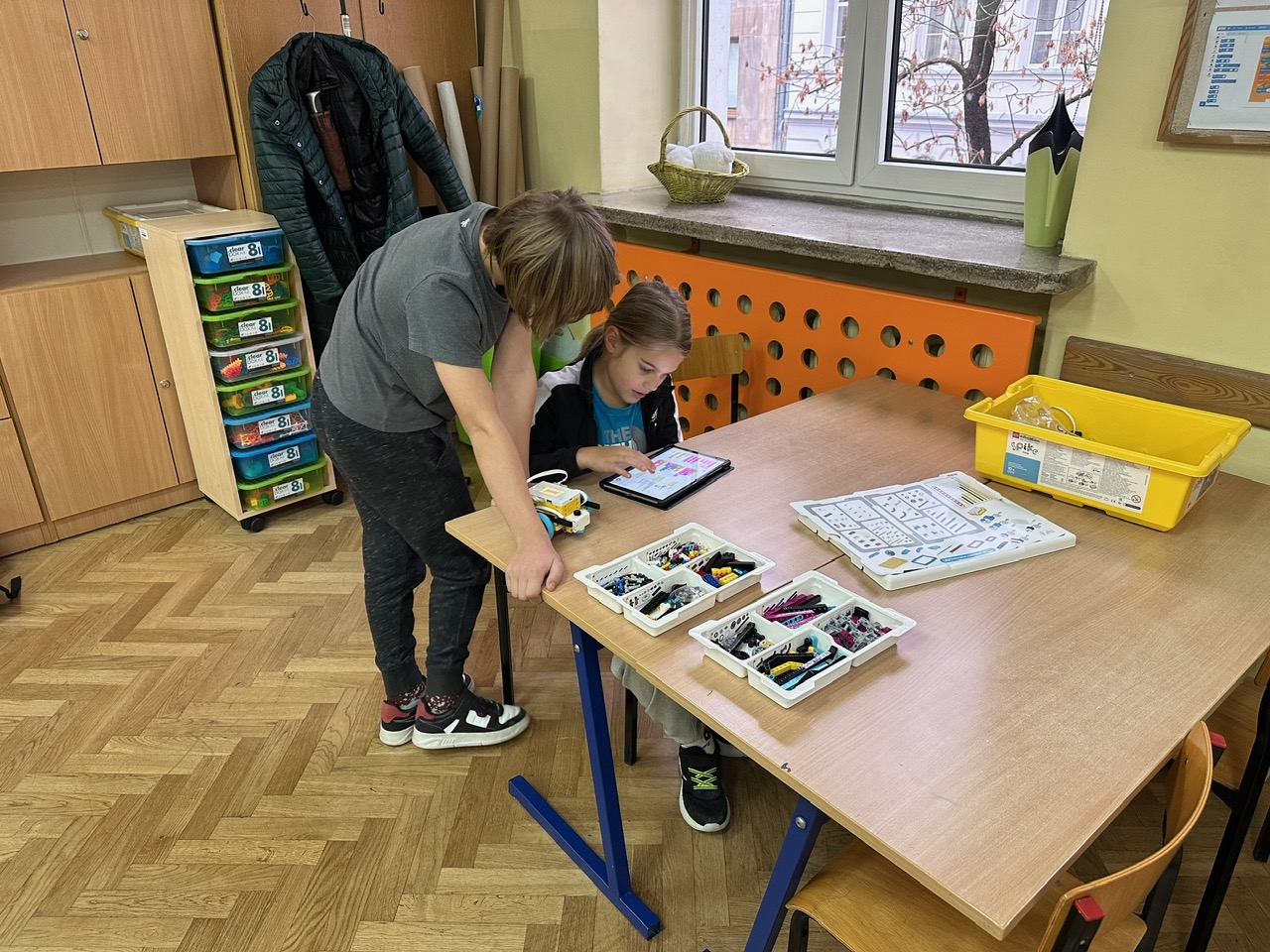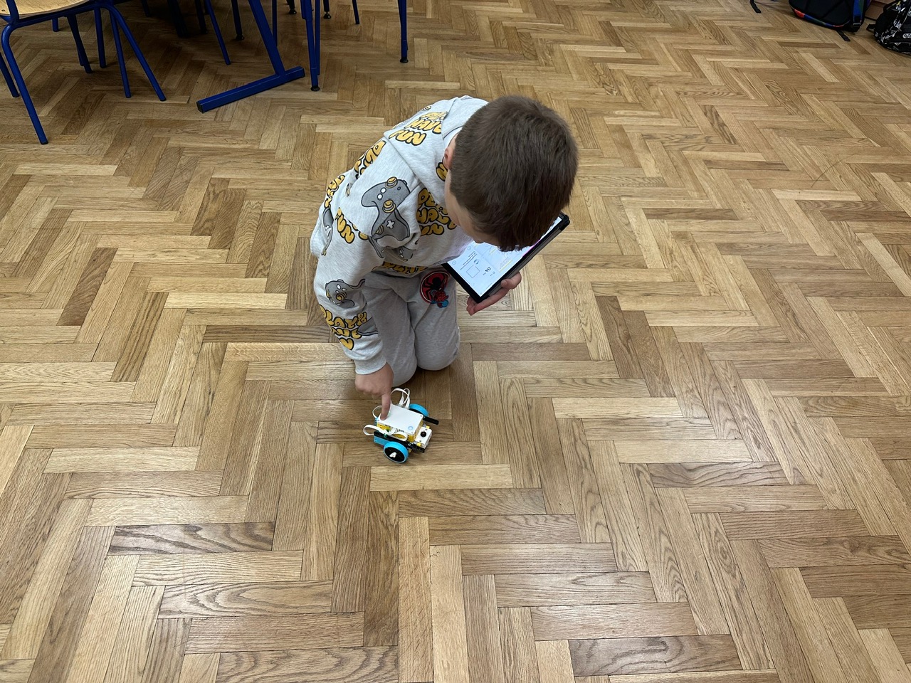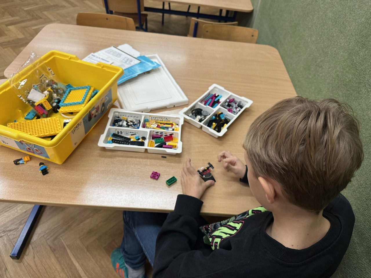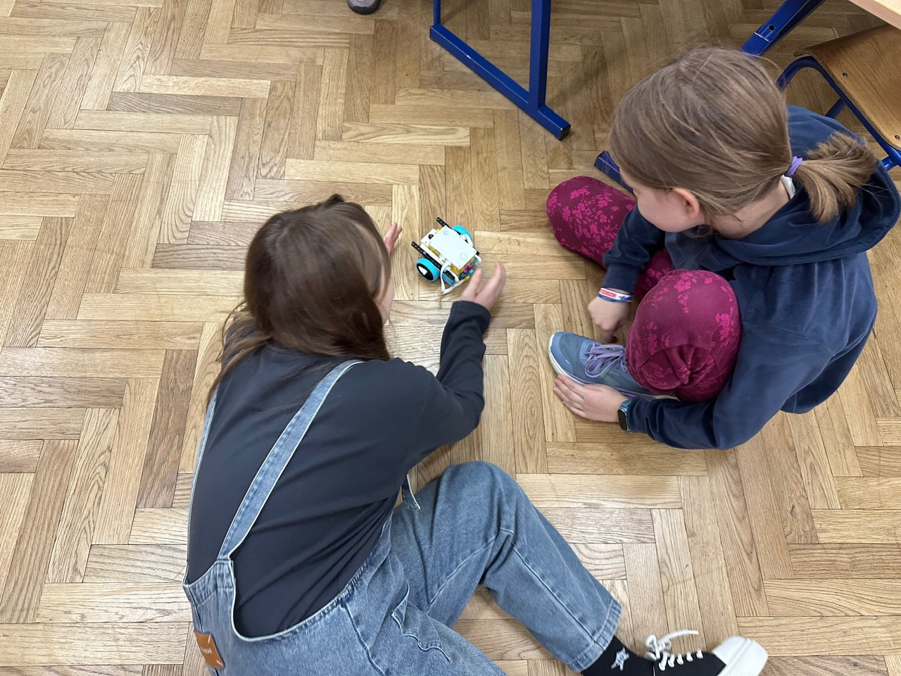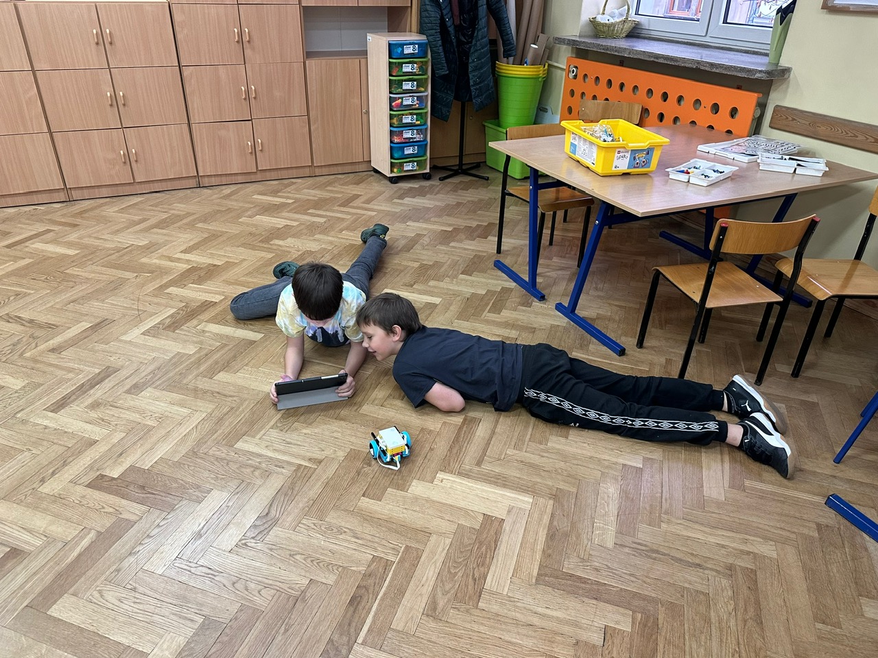Kolejne zajęcia robotyczne w klasach czwartych również poświęcone były zestawom konstrukcyjnym Lego Education Spike. Tym razem dzieci skonstruowały jeżdżące roboty.