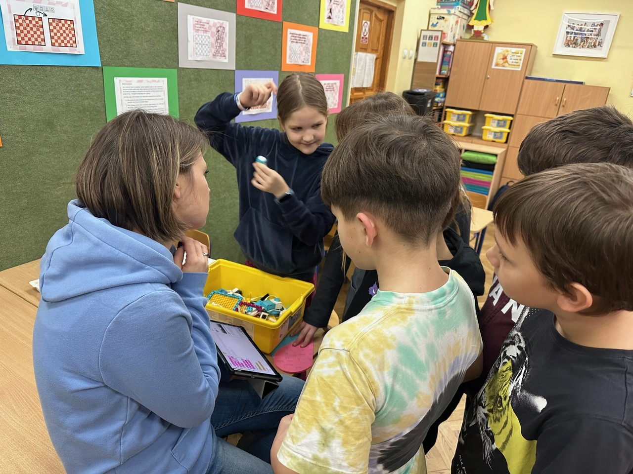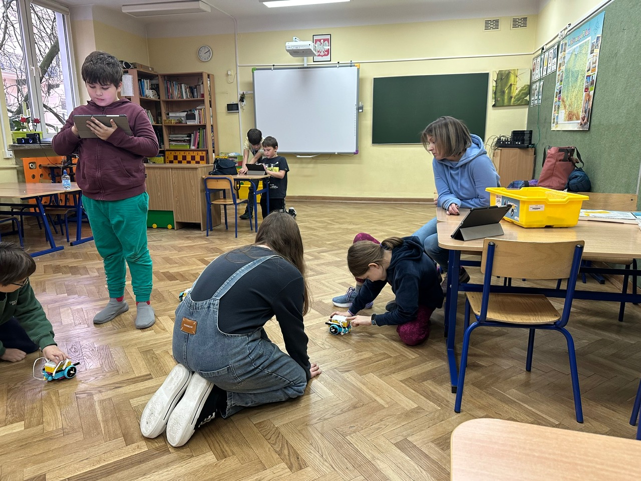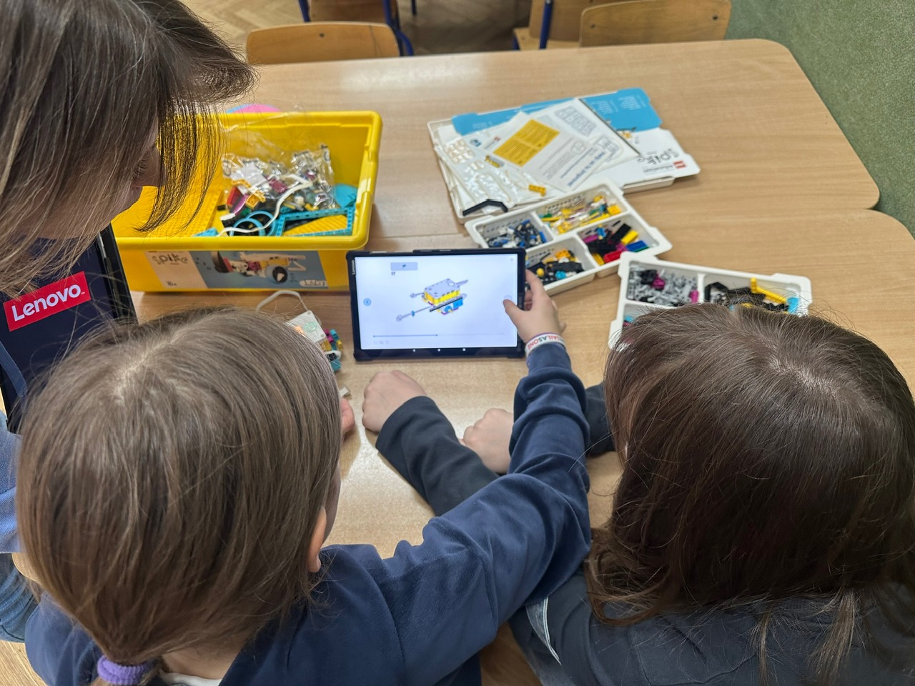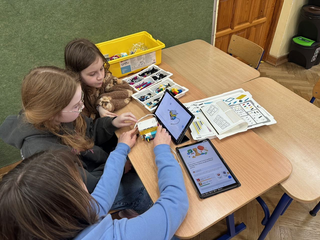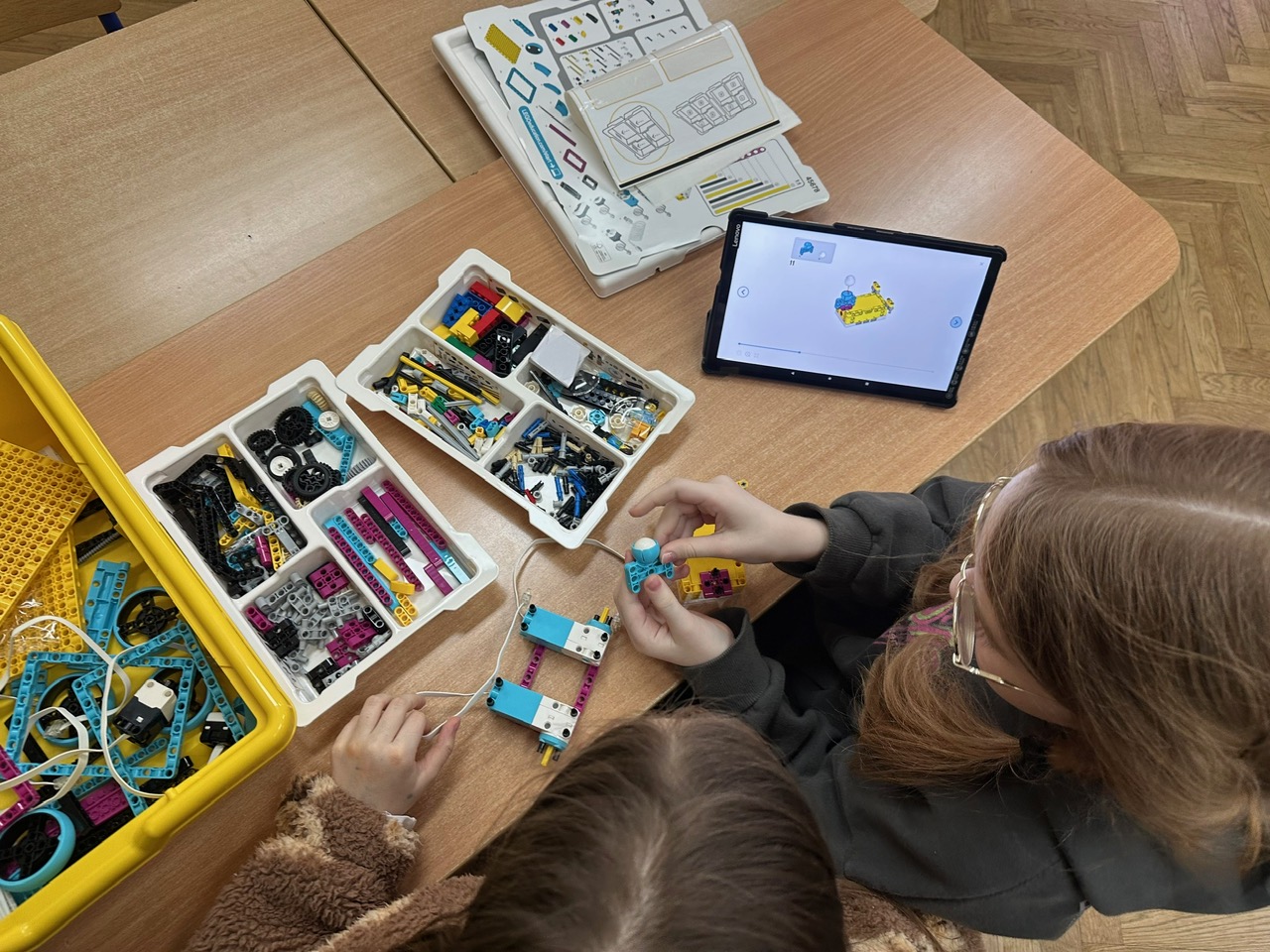 Kolejne zajęcia robotyczne w klasach czwartych również poświęcone były zestawom konstrukcyjnym Lego Education Spike. Tym razem dzieci skonstruowały jeżdżące roboty.