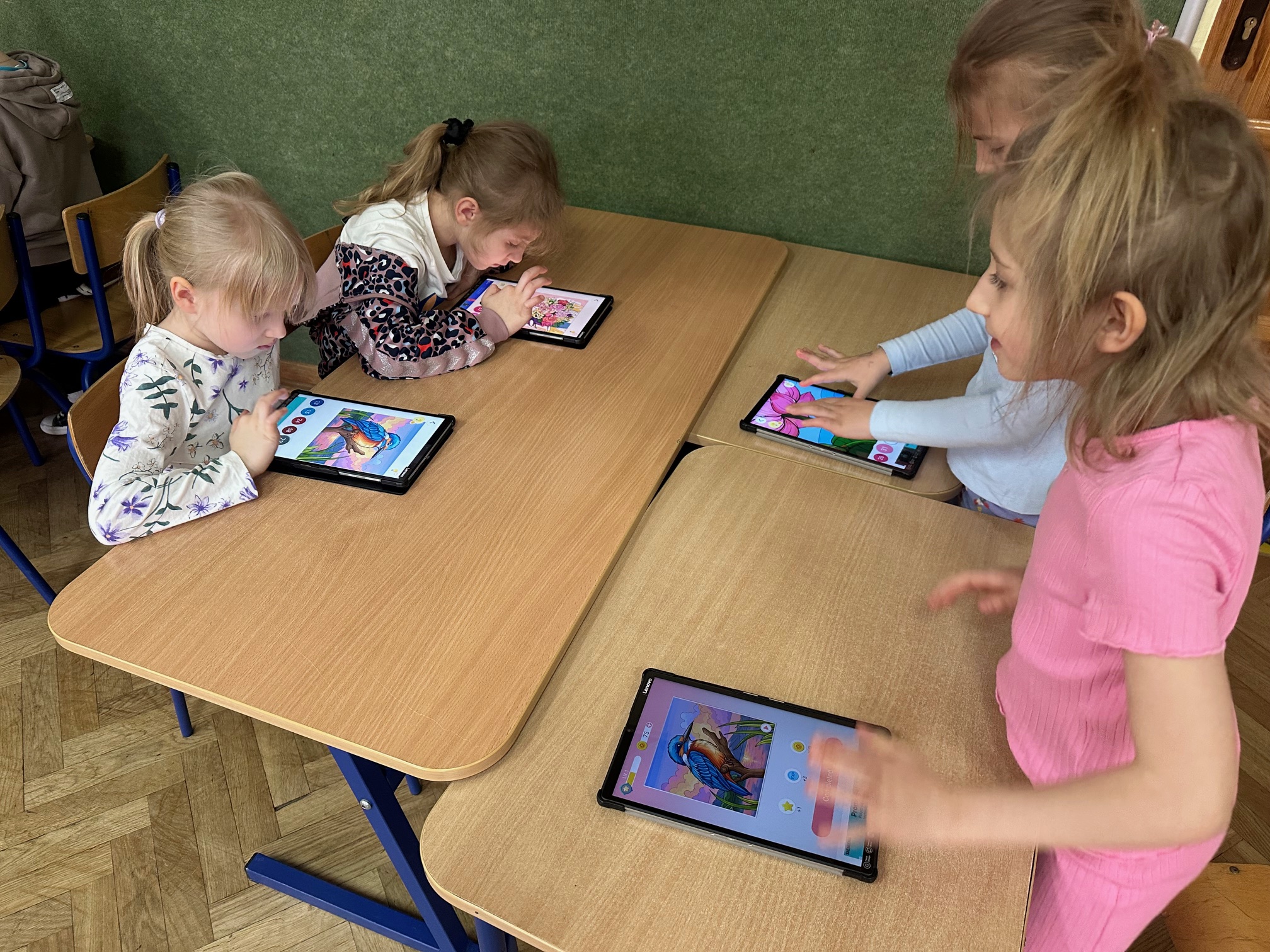Kolejne warsztaty informatyczno-robotyczne dla Przedszkolaków z Przedszkola nr 33 związane były z wiosną i nadchodzącymi Świętami Wielkanocnymi. Dzieci kolorowały na tabletach obrazki wiosenne i świąteczne doskonaląc koordynację wzrokowo-ruchową i znajomość liczb.