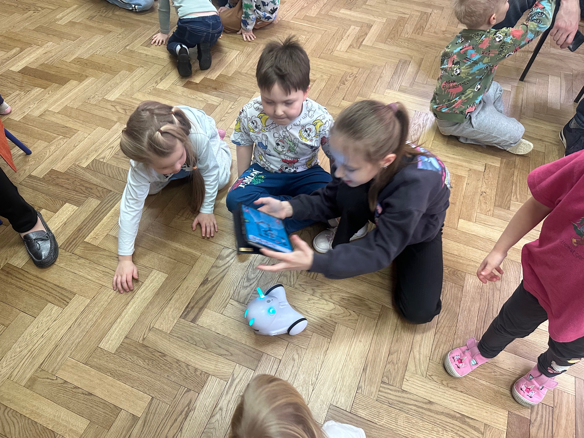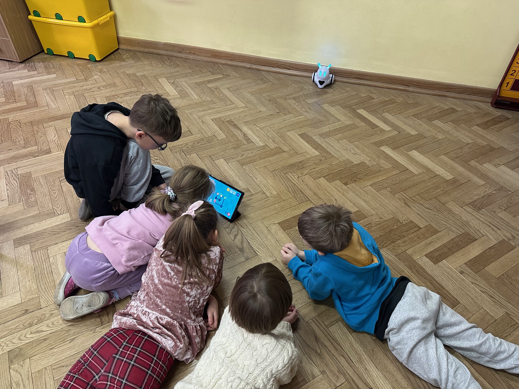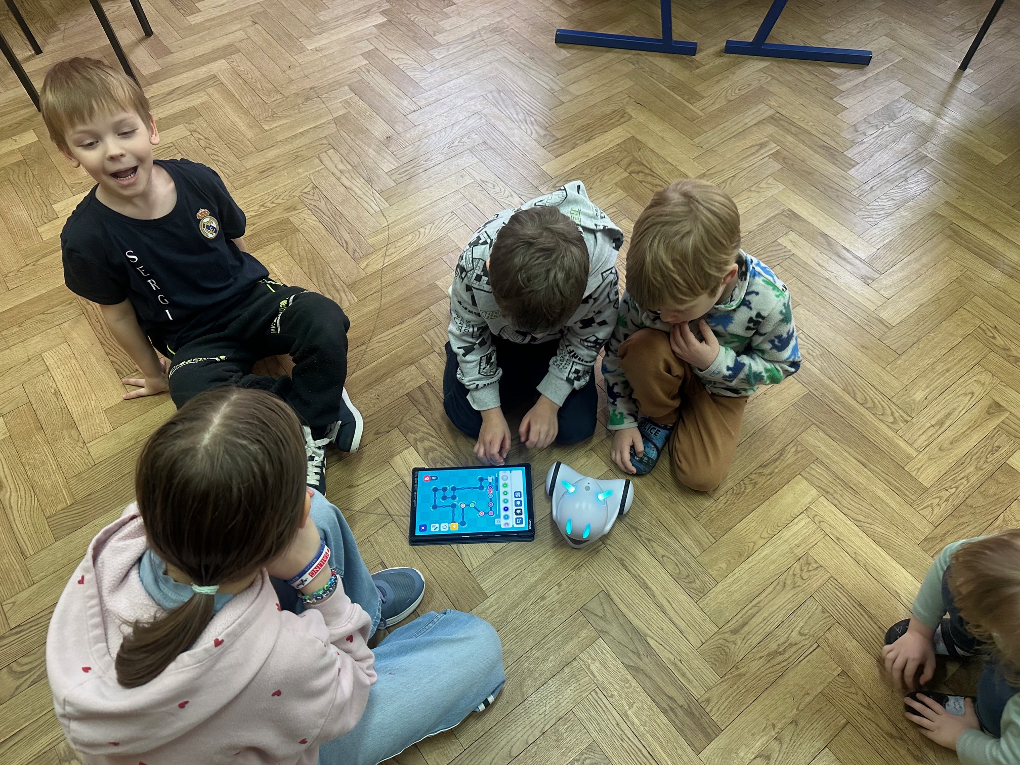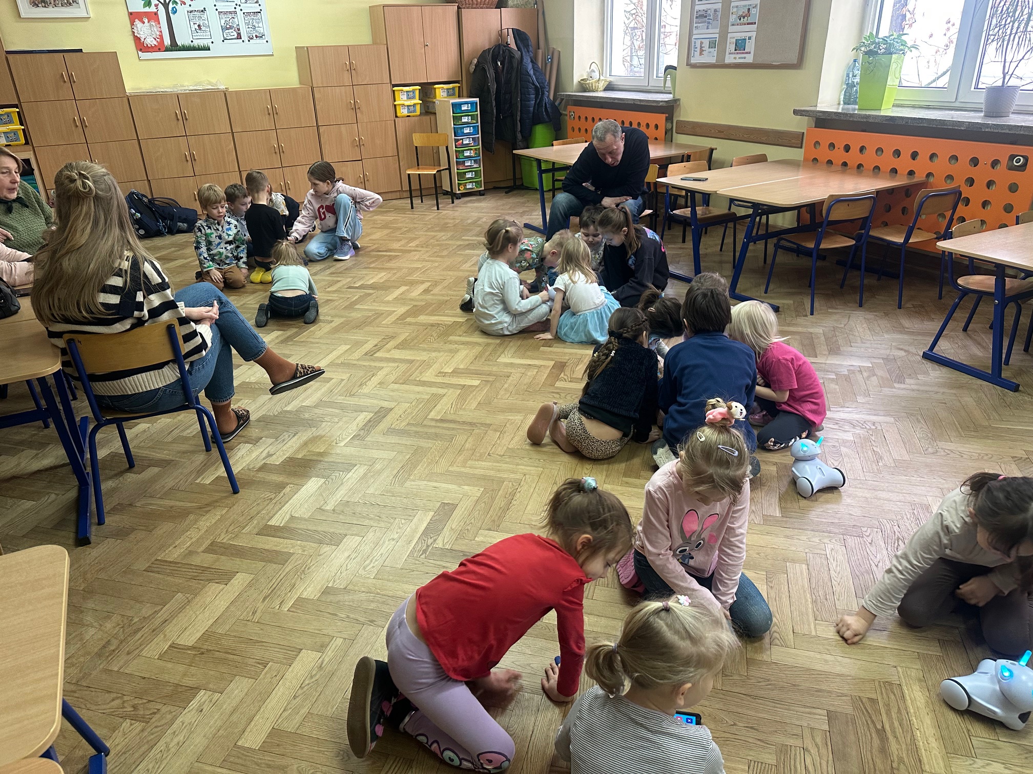 W ostatnim tygodniu przed feriami zimowymi odwiedzili nas bardzo mili goście. W środę i czwartek w szkole pojawiły się Przedszkolaki z zaprzyjaźnionego Przedszkola nr 33 na ulicy Wilczej. Nasi, być może, przyszli uczniowie, obejrzeli Jasełka oraz uczestniczyli w warsztatach robotycznych. Z pomocą starszych koleżanek i kolegów z klasy IVb poznawali tajniki programowania robotów Photon.
