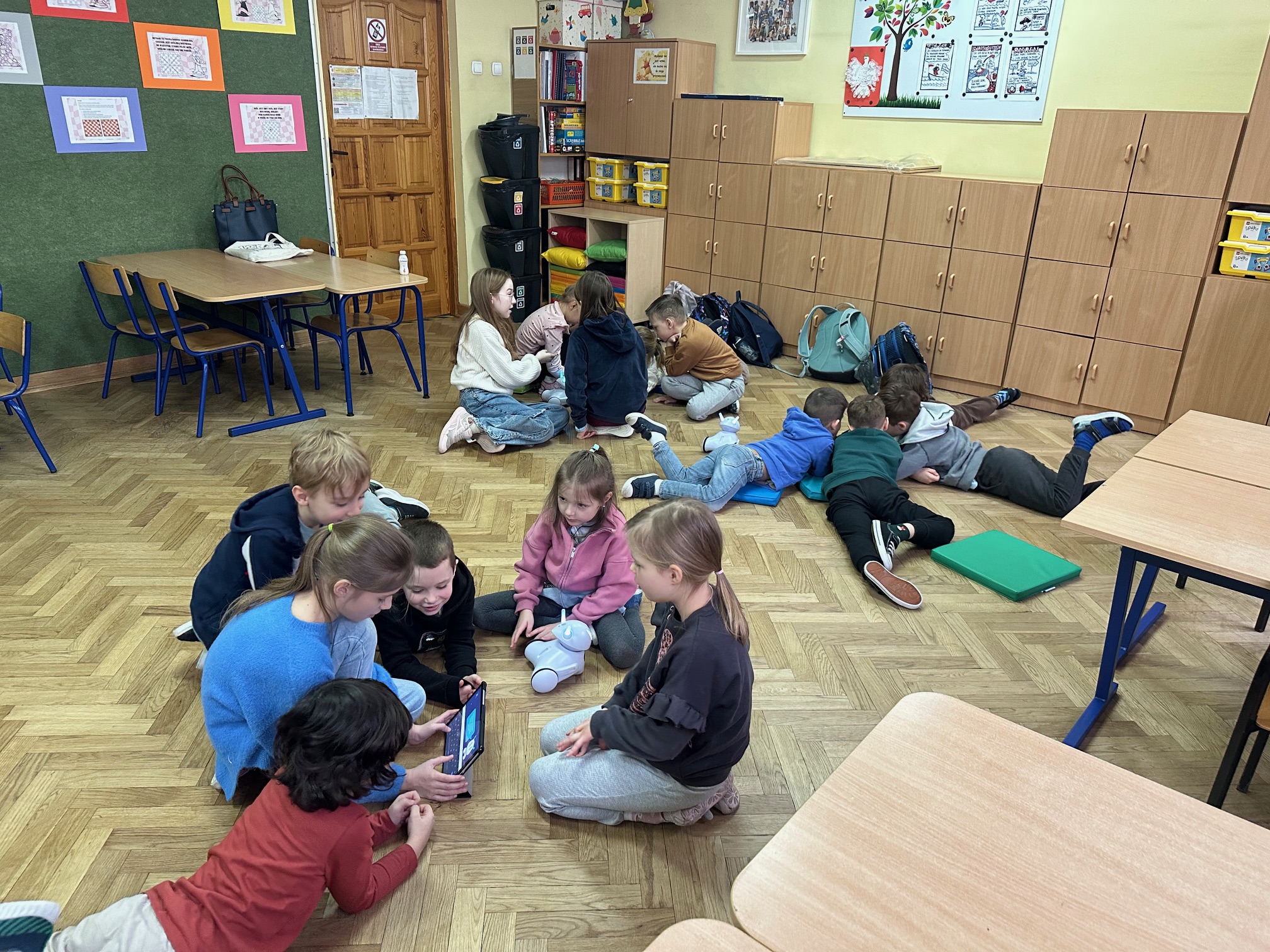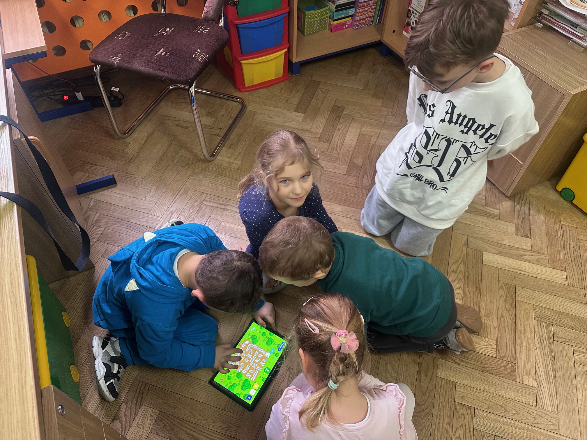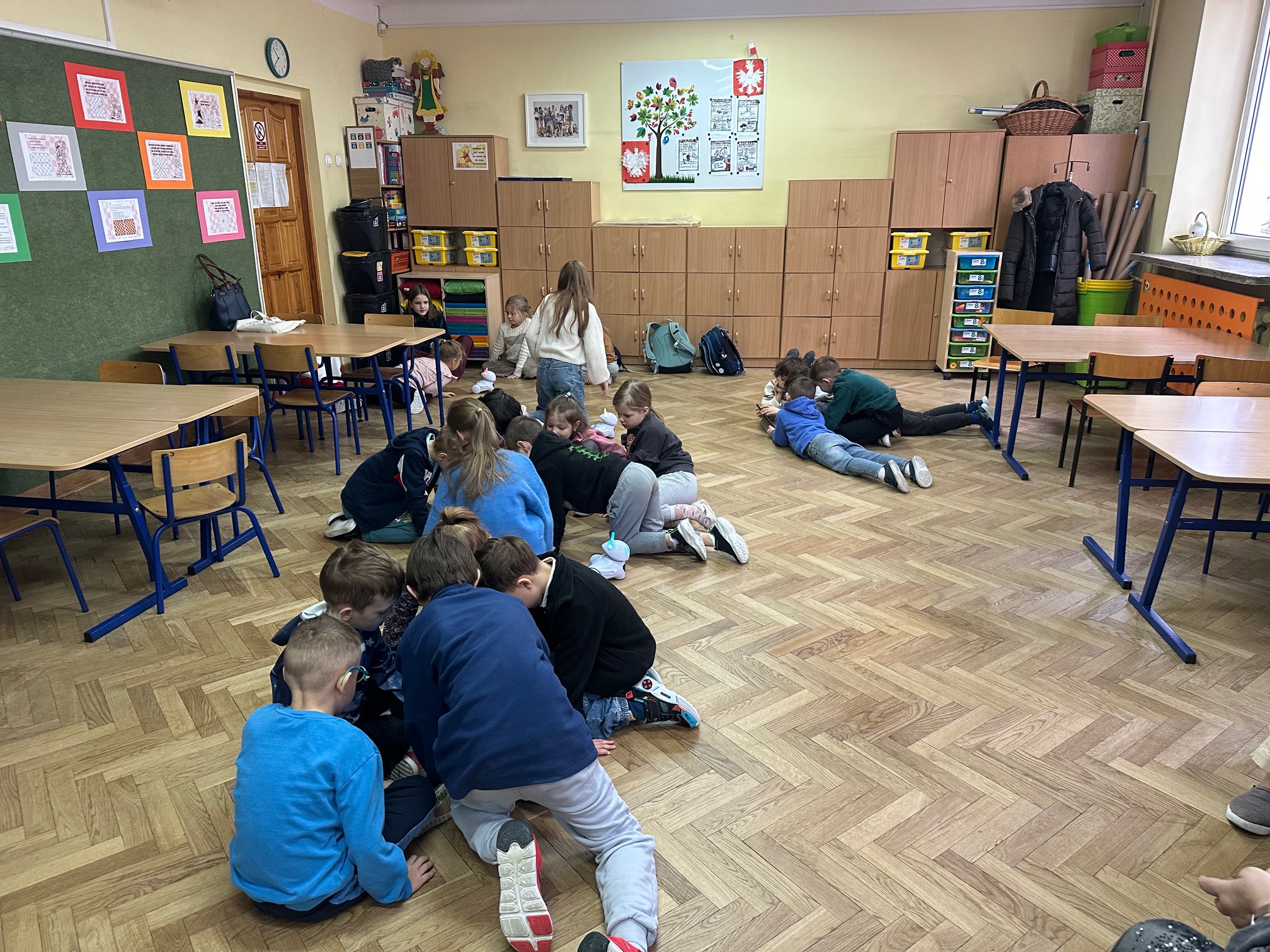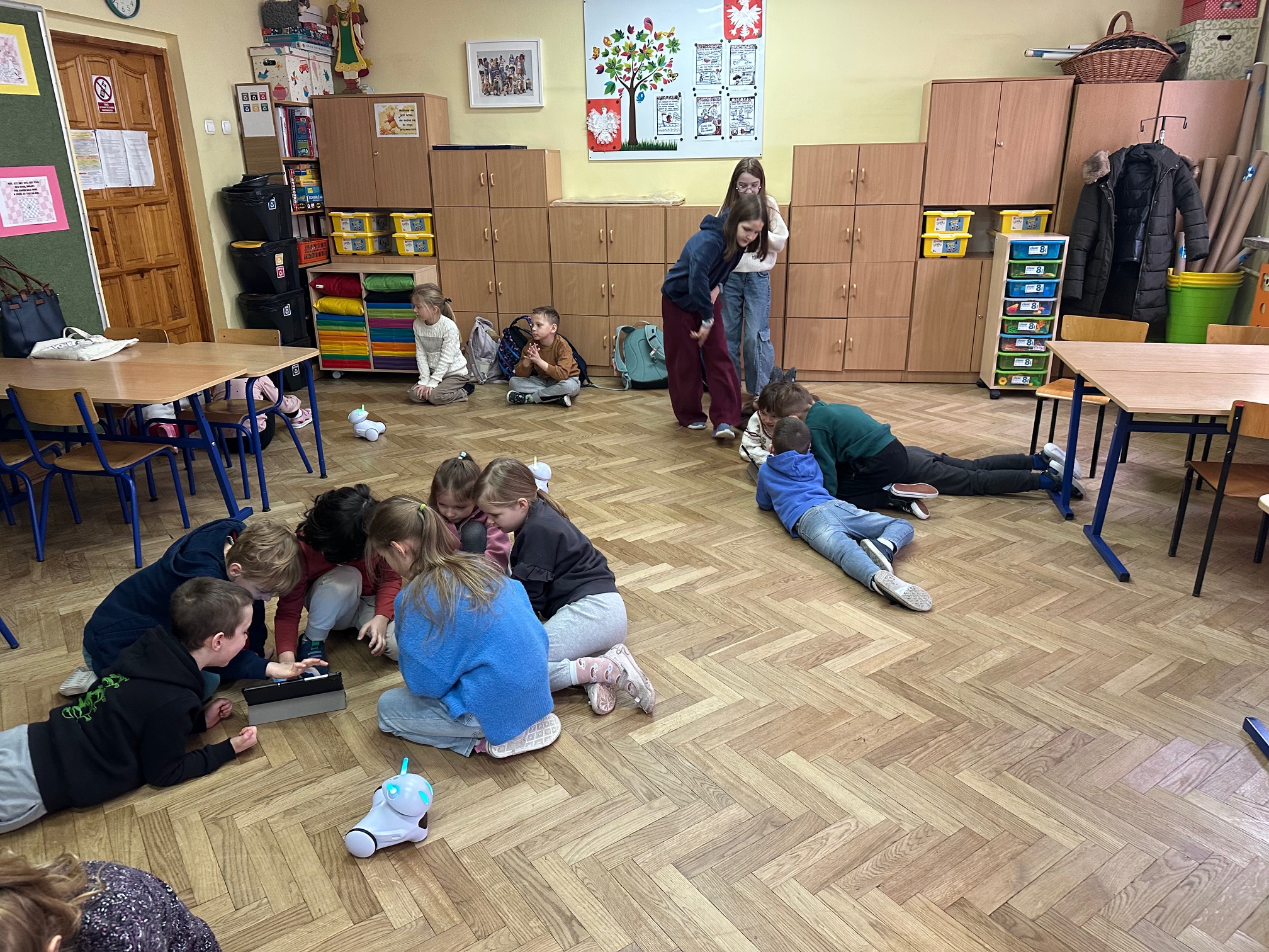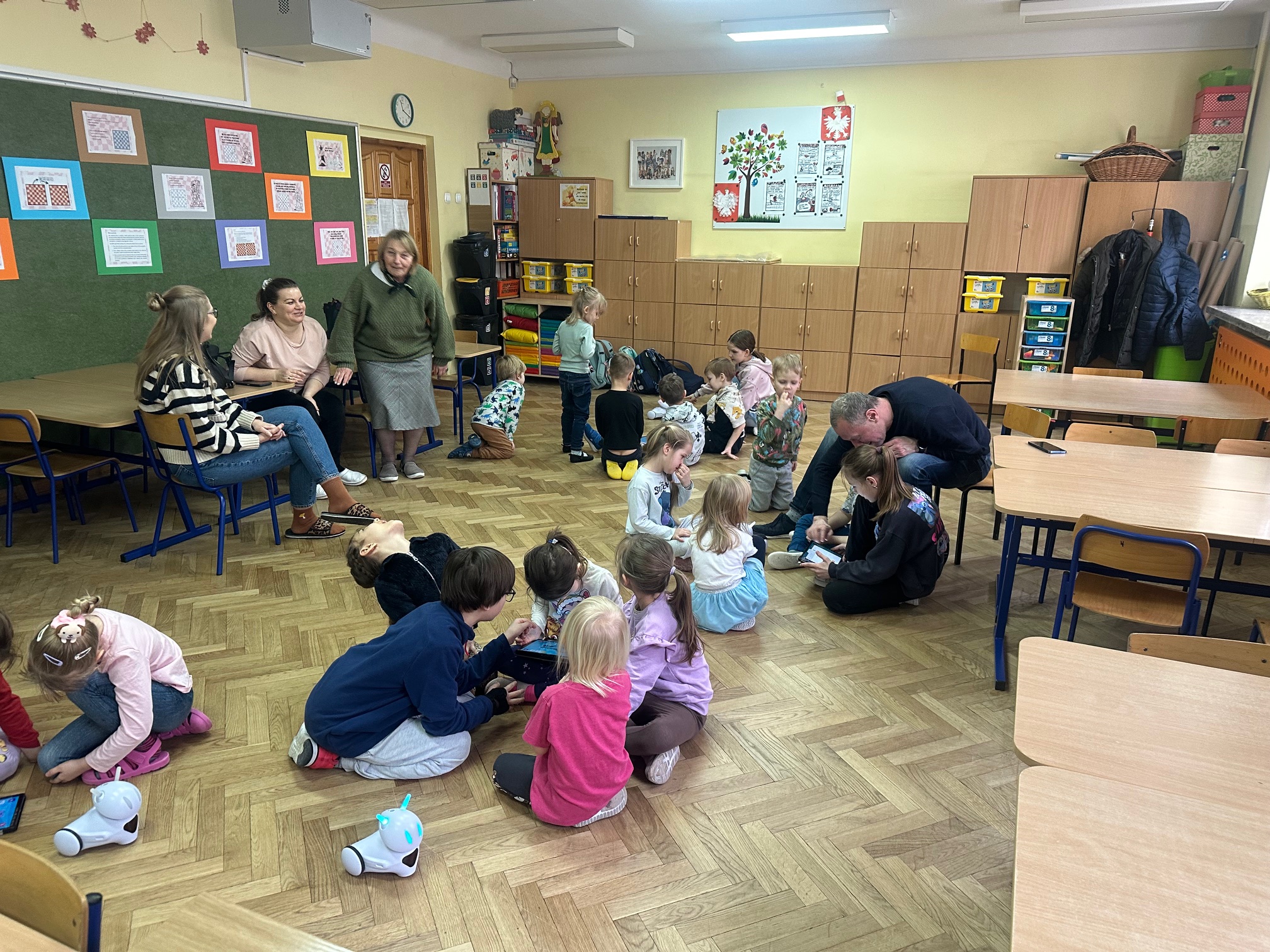 W ostatnim tygodniu przed feriami zimowymi odwiedzili nas bardzo mili goście. W środę i czwartek w szkole pojawiły się Przedszkolaki z zaprzyjaźnionego Przedszkola nr 33 na ulicy Wilczej. Nasi, być może, przyszli uczniowie, obejrzeli Jasełka oraz uczestniczyli w warsztatach robotycznych. Z pomocą starszych koleżanek i kolegów z klasy IVb poznawali tajniki programowania robotów Photon.