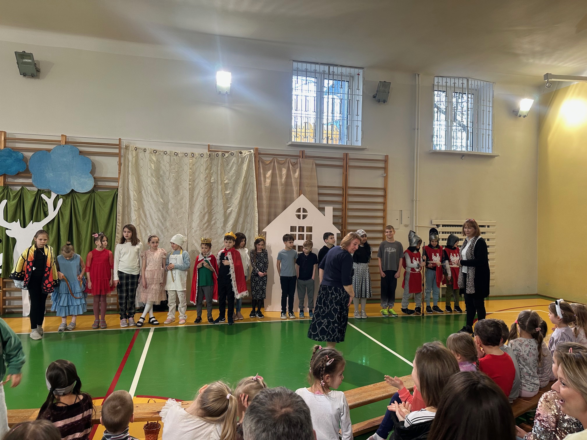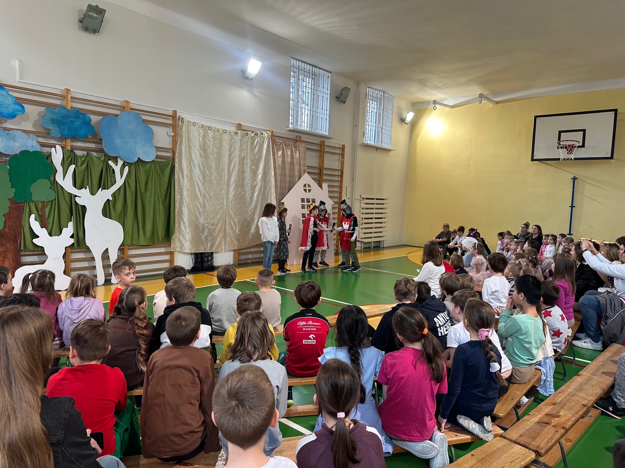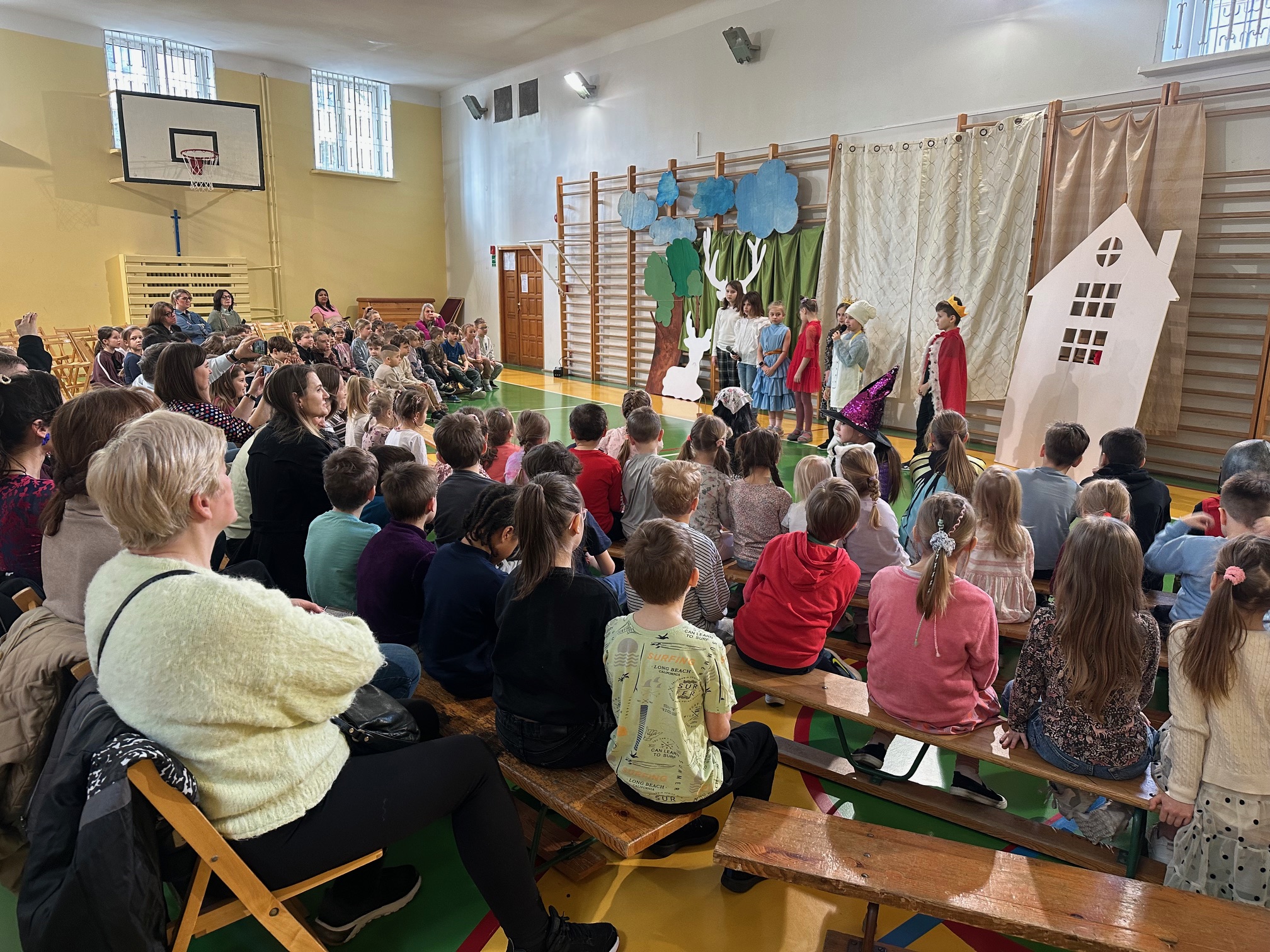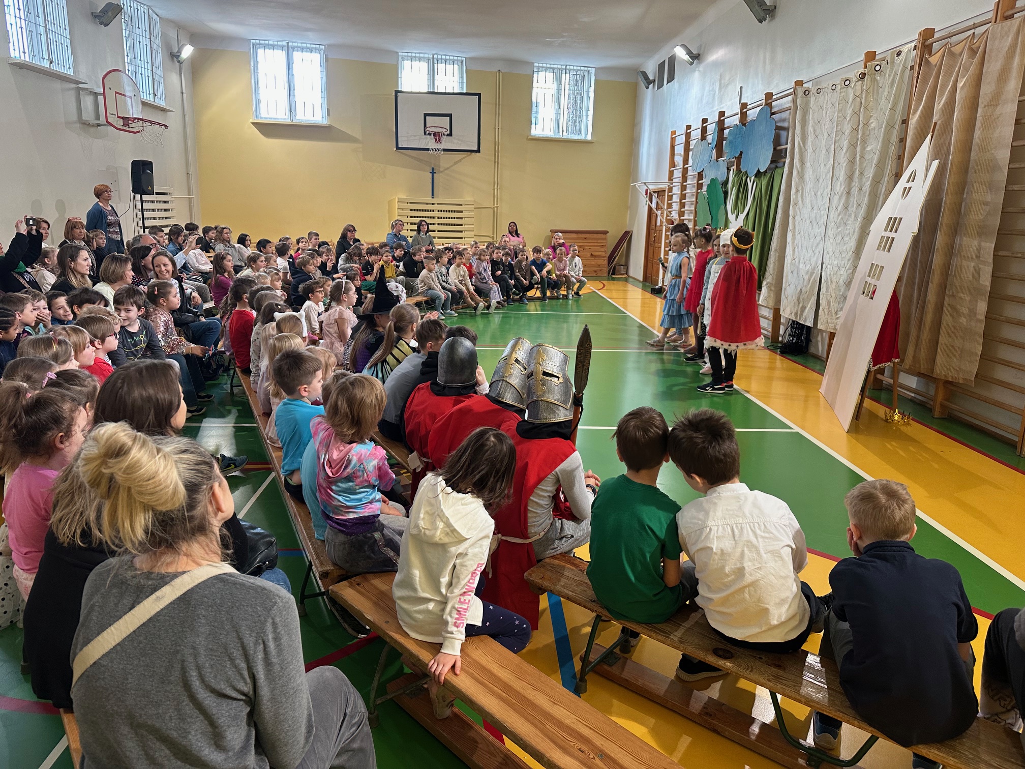 W czwartek odwiedzili nas bardzo mili Goście - zaprzyjaźnione Przedszkolaki z Przedszkola nr 33 na Wilczej. Grupa III i IV obejrzały wraz ze starszymi koleżankami i kolegami z klas młodszych przedstawienie pt. "O królu Kalasantym Wielkim, Hanusi i zaczarowanym królewiczu". Spektakl powstał na motywach baśni Gustawa Morcinka, naszego Patrona i był częścią obchodów 110. rocznicy powstania szkoły. Aktorami byli uczniowie klasy 3a, a reżyserkami spektaklu panie Adrianna Paszkiewicz-Gatkowska i Barbara Rogacz.
