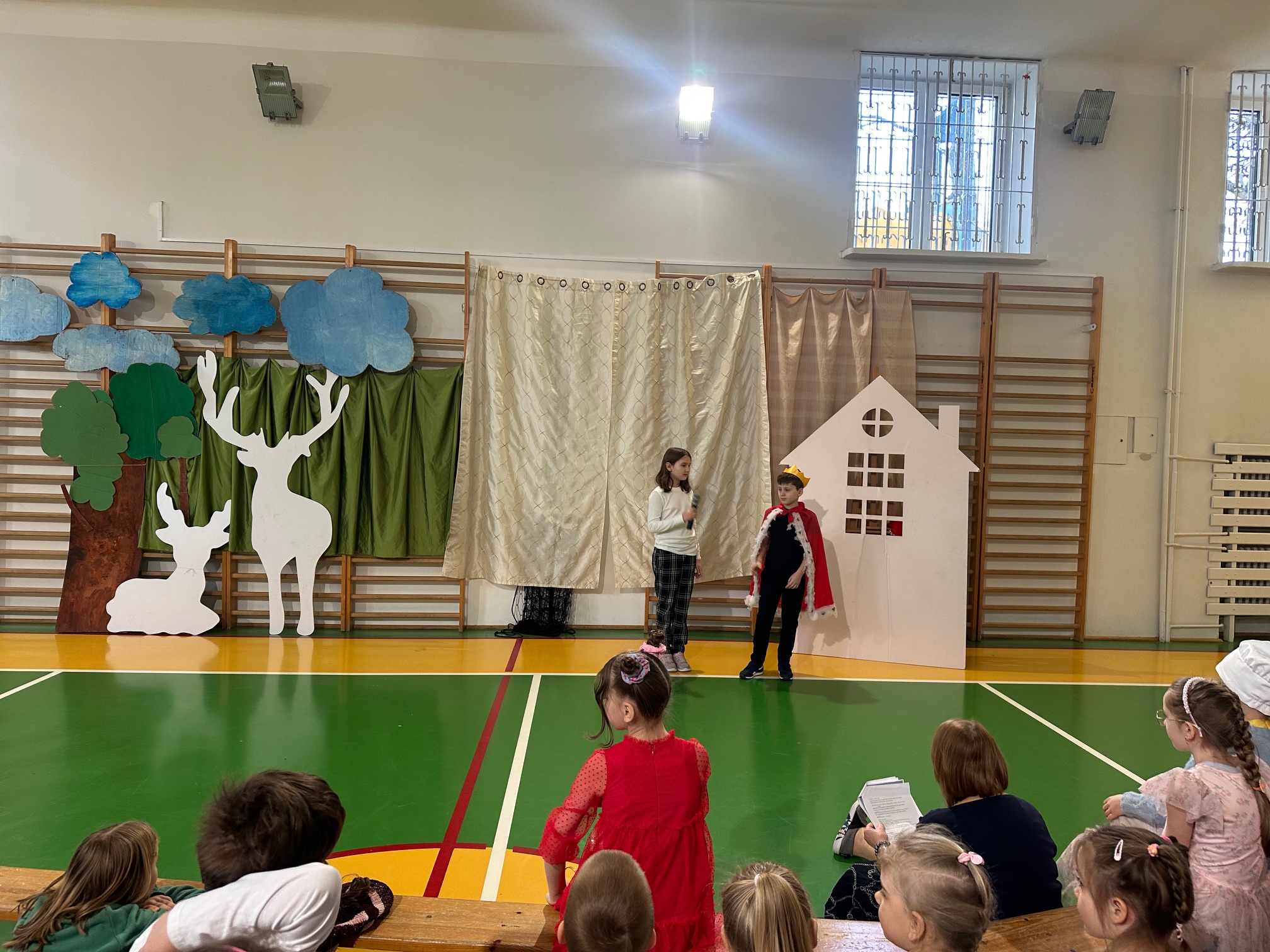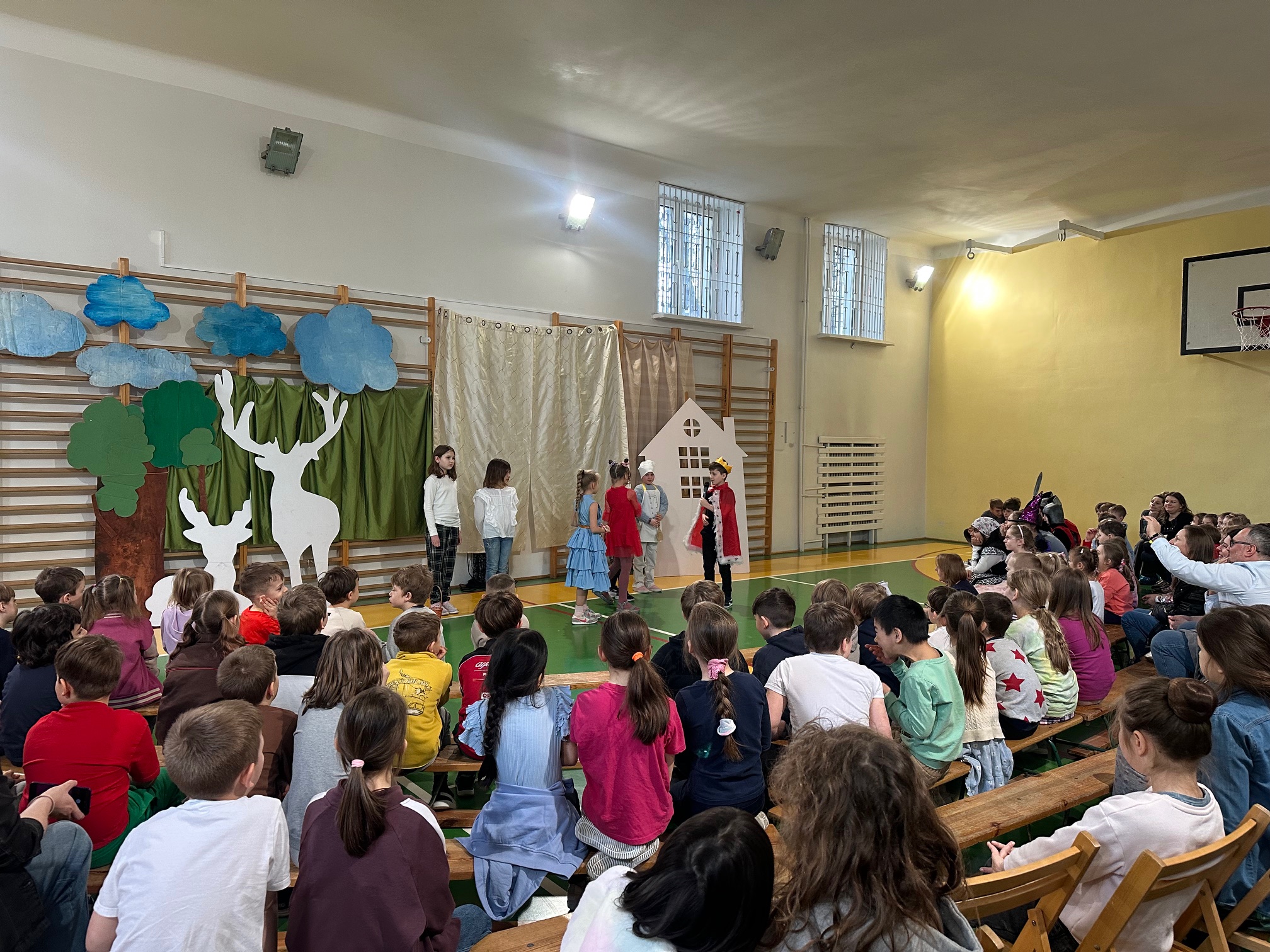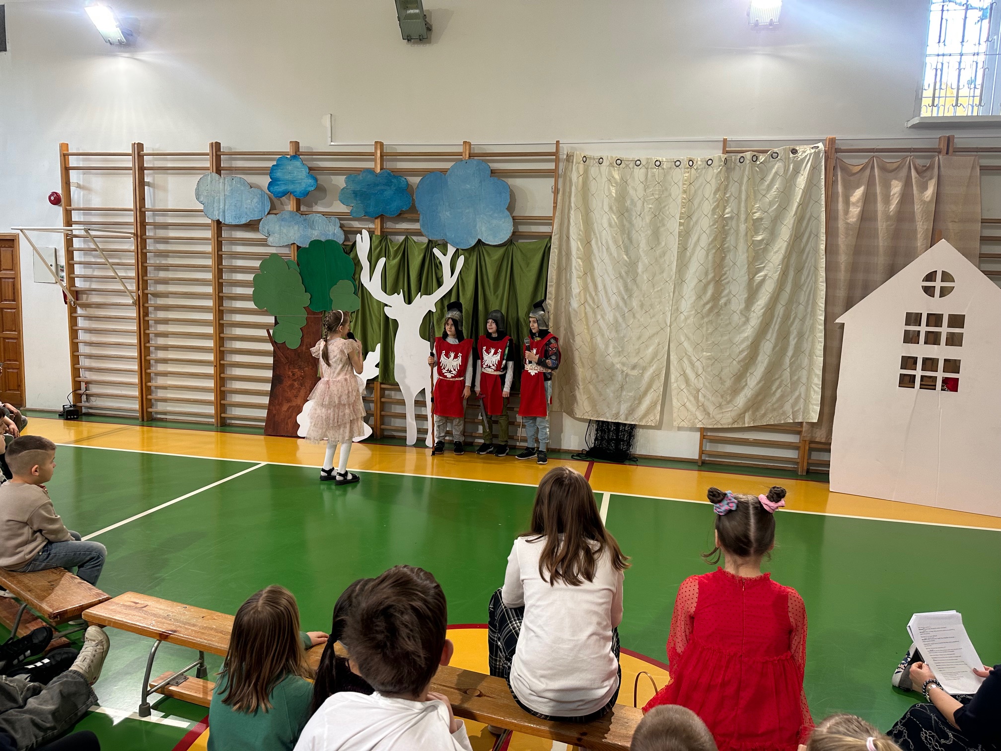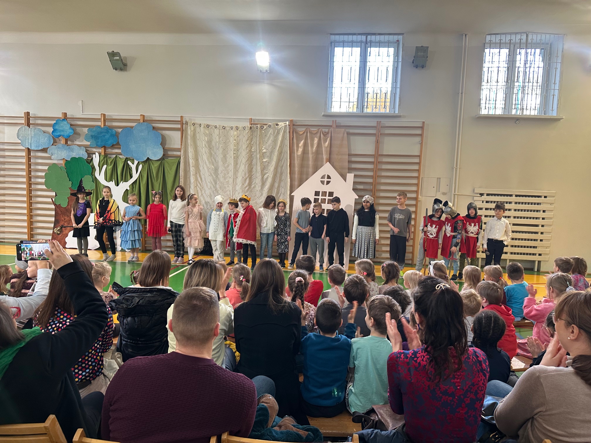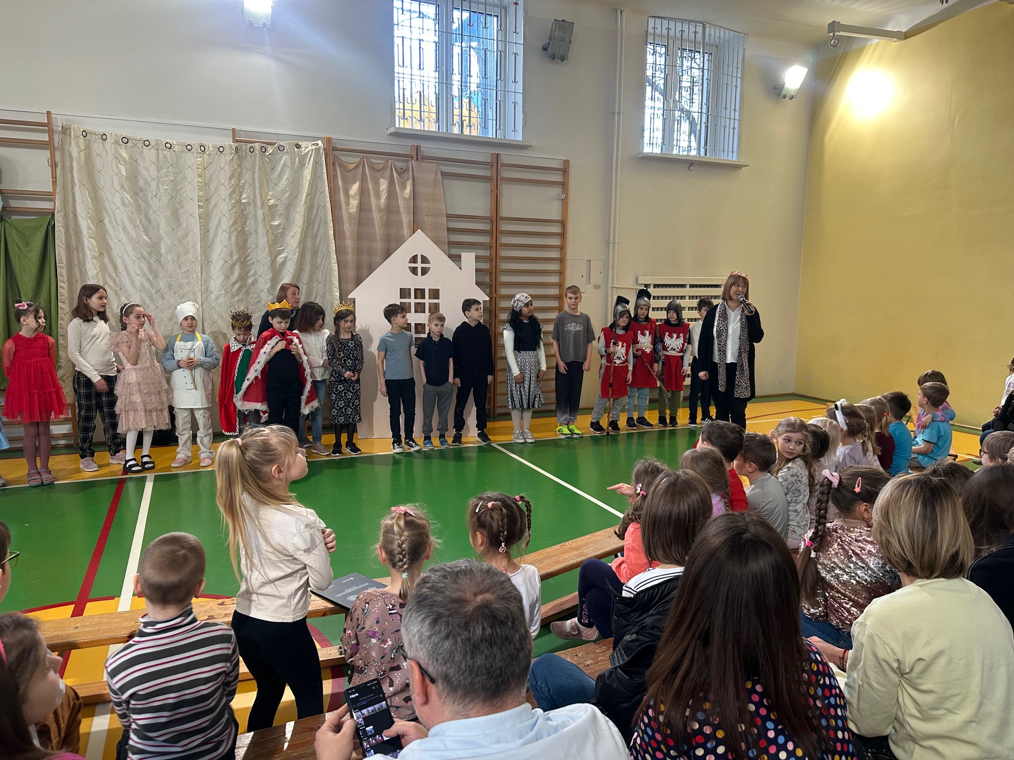 W czwartek odwiedzili nas bardzo mili Goście - zaprzyjaźnione Przedszkolaki z Przedszkola nr 33 na Wilczej. Grupa III i IV obejrzały wraz ze starszymi koleżankami i kolegami z klas młodszych przedstawienie pt. "O królu Kalasantym Wielkim, Hanusi i zaczarowanym królewiczu". Spektakl powstał na motywach baśni Gustawa Morcinka, naszego Patrona i był częścią obchodów 110. rocznicy powstania szkoły. Aktorami byli uczniowie klasy 3a, a reżyserkami spektaklu panie Adrianna Paszkiewicz-Gatkowska i Barbara Rogacz.