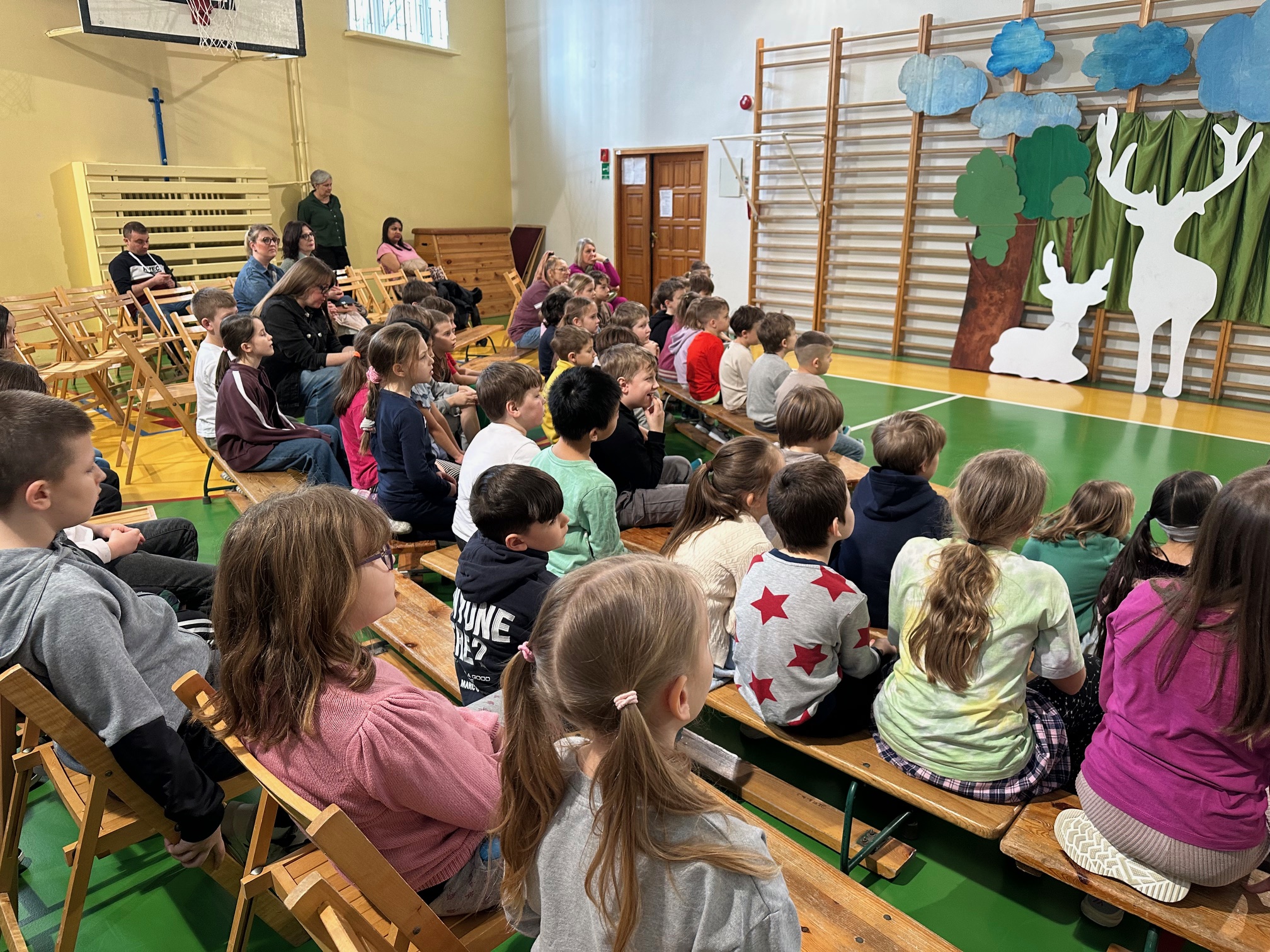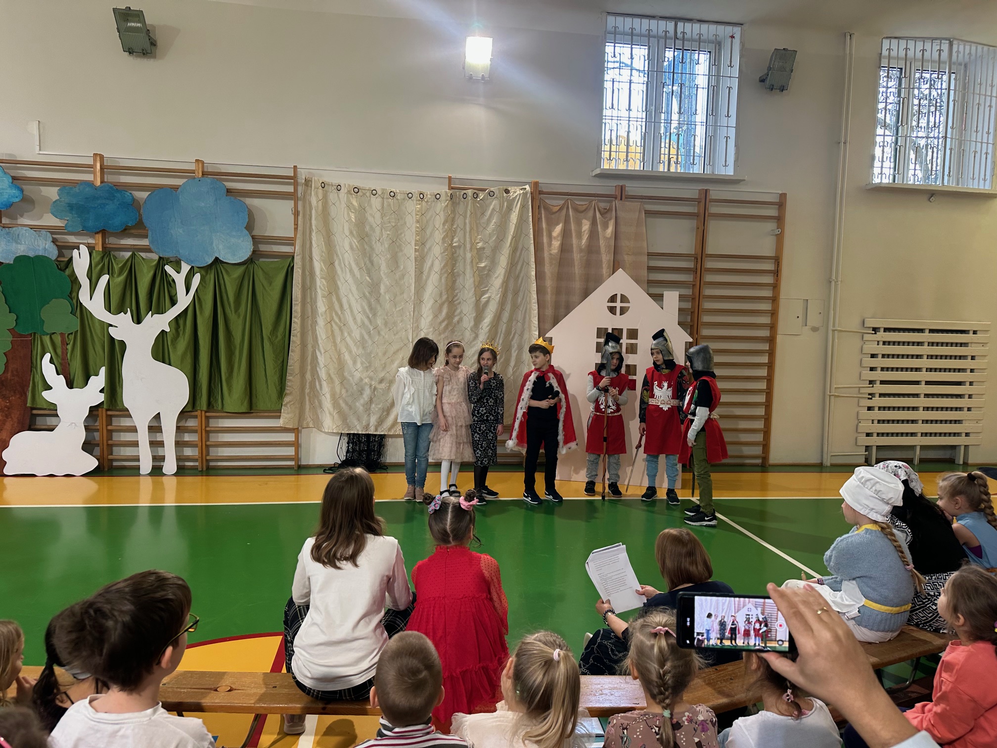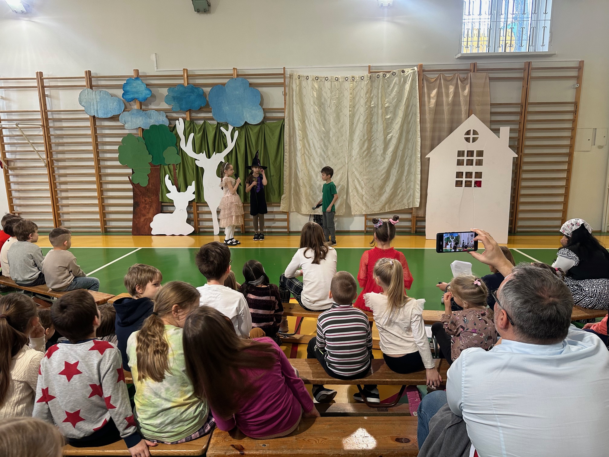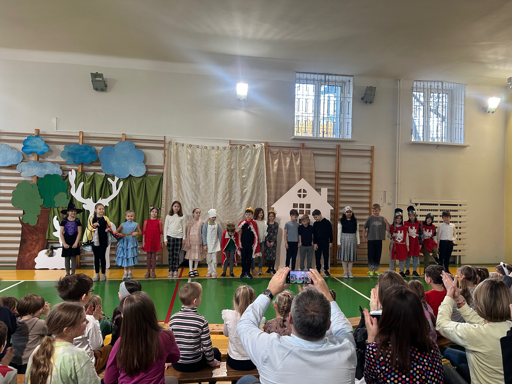 W czwartek odwiedzili nas bardzo mili Goście - zaprzyjaźnione Przedszkolaki z Przedszkola nr 33 na Wilczej. Grupa III i IV obejrzały wraz ze starszymi koleżankami i kolegami z klas młodszych przedstawienie pt. "O królu Kalasantym Wielkim, Hanusi i zaczarowanym królewiczu". Spektakl powstał na motywach baśni Gustawa Morcinka, naszego Patrona i był częścią obchodów 110. rocznicy powstania szkoły. Aktorami byli uczniowie klasy 3a, a reżyserkami spektaklu panie Adrianna Paszkiewicz-Gatkowska i Barbara Rogacz.