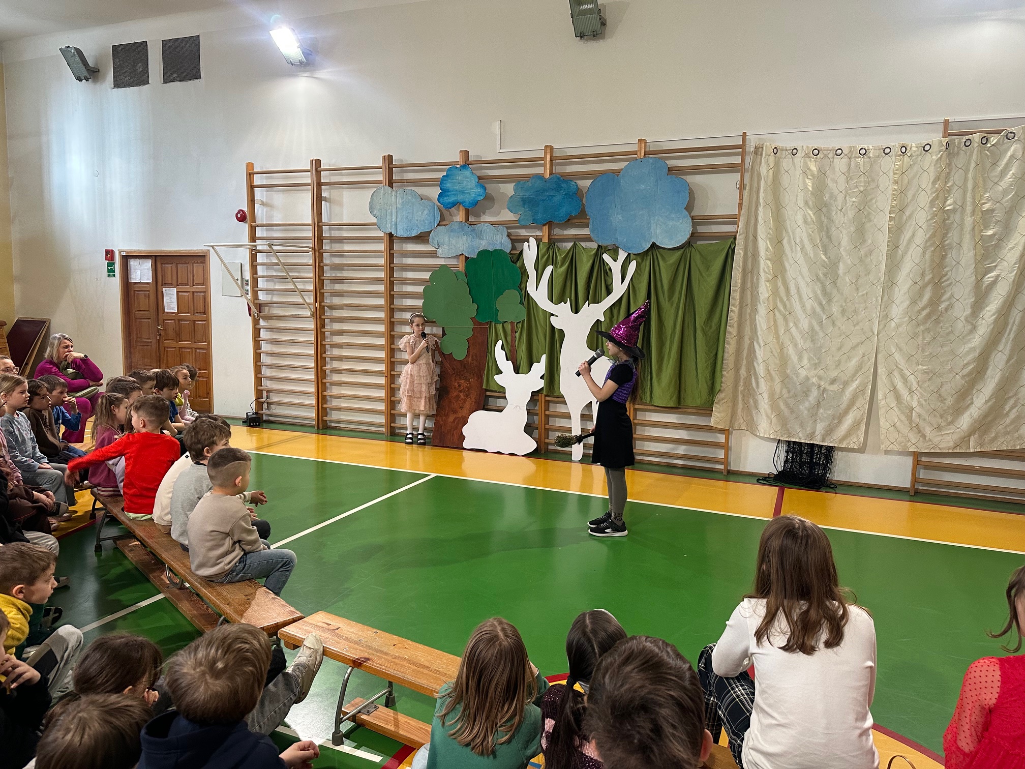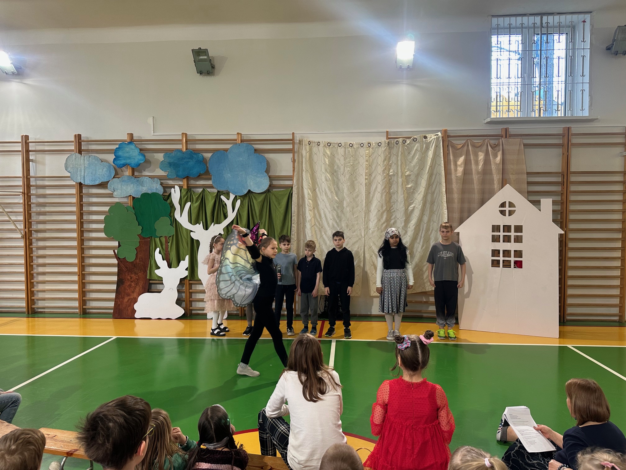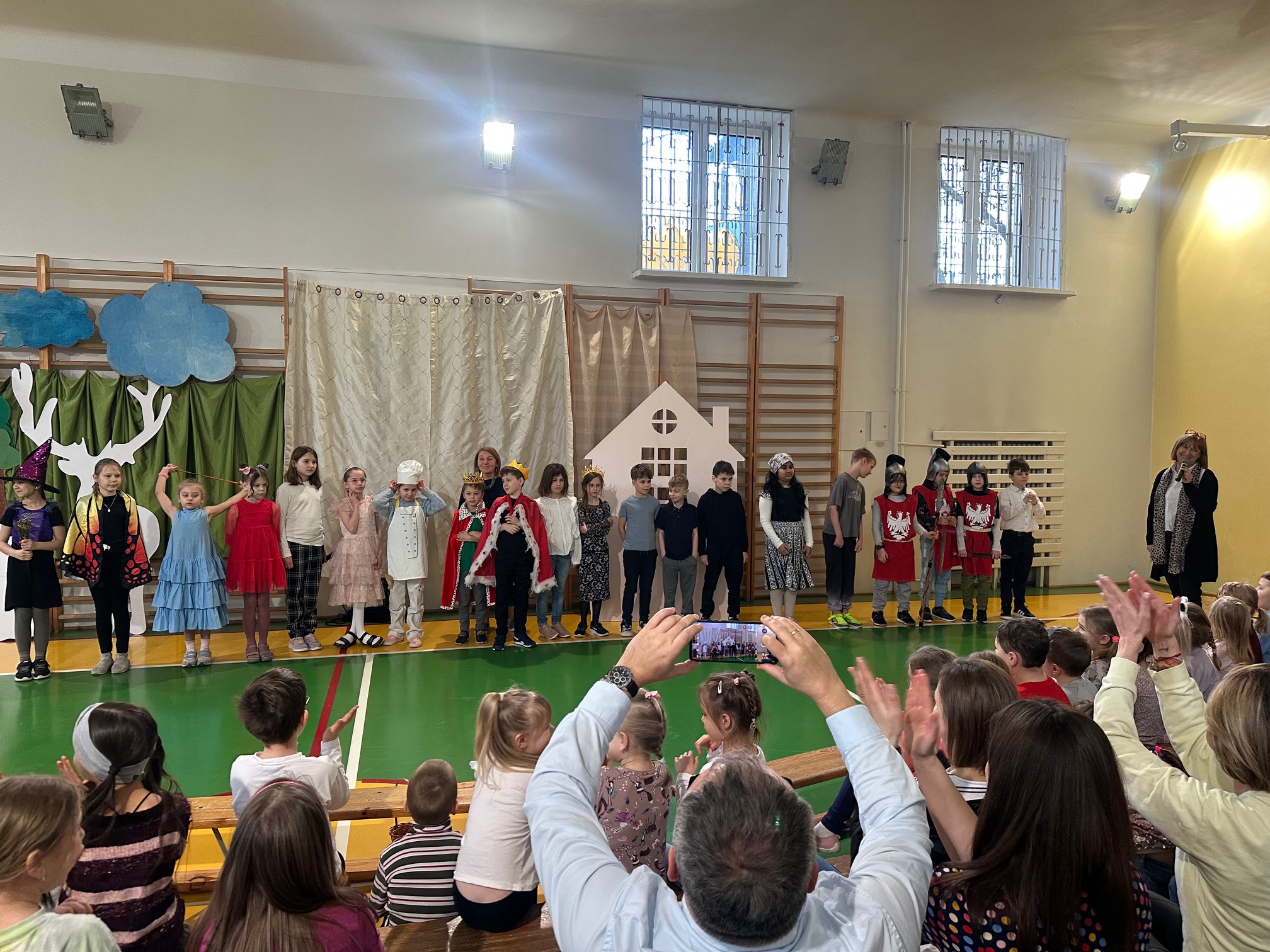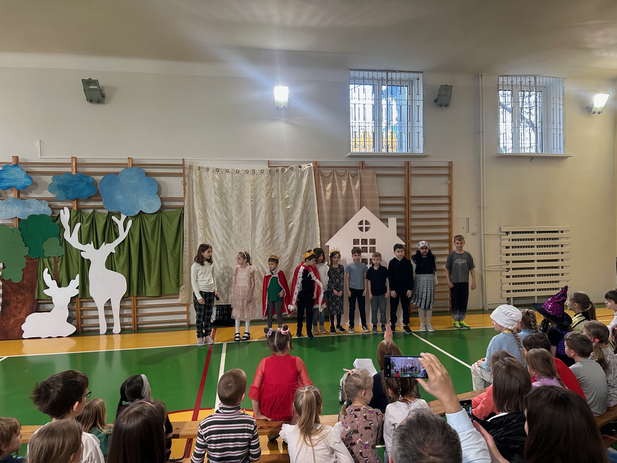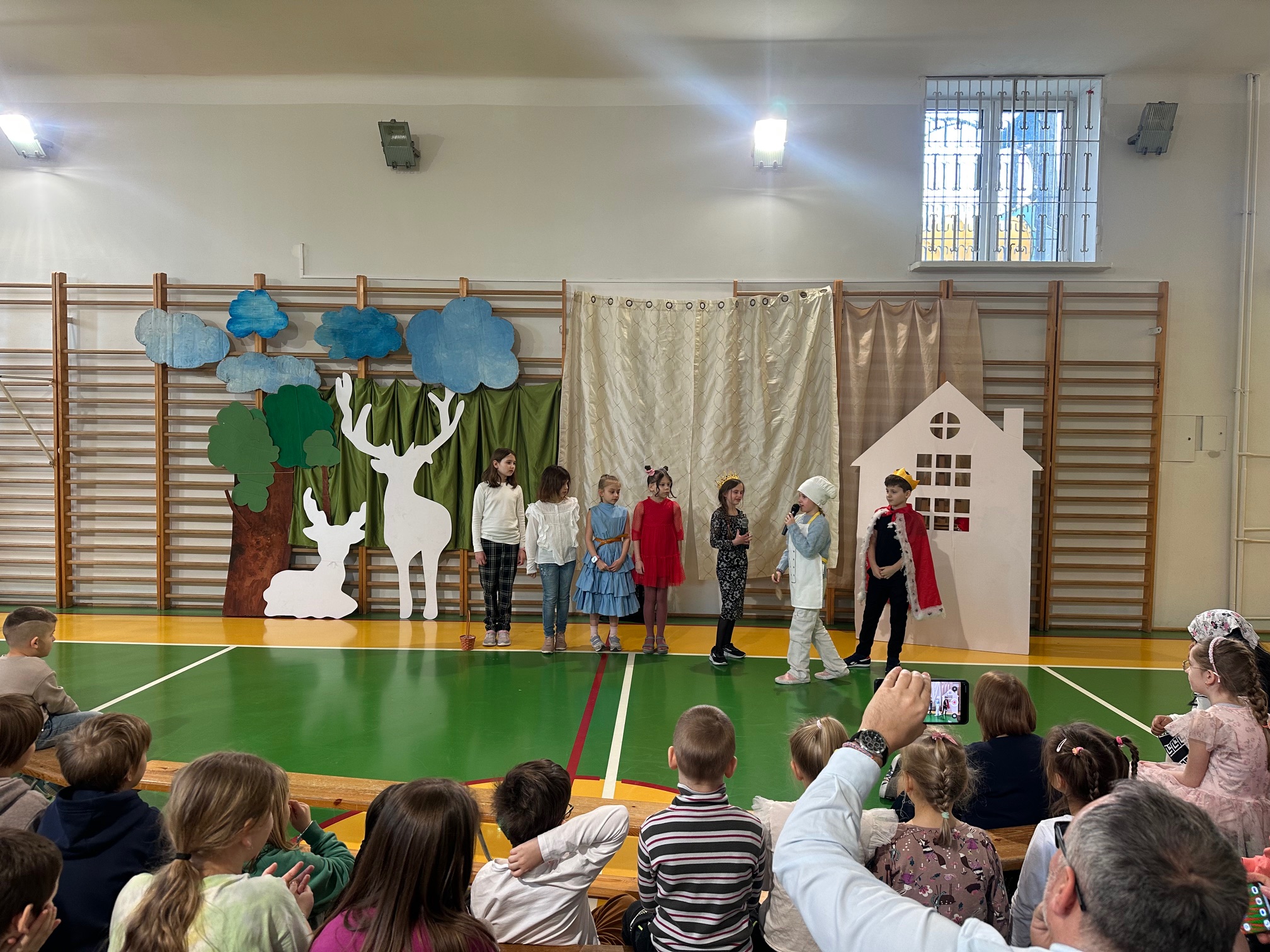 W czwartek odwiedzili nas bardzo mili Goście - zaprzyjaźnione Przedszkolaki z Przedszkola nr 33 na Wilczej. Grupa III i IV obejrzały wraz ze starszymi koleżankami i kolegami z klas młodszych przedstawienie pt. "O królu Kalasantym Wielkim, Hanusi i zaczarowanym królewiczu". Spektakl powstał na motywach baśni Gustawa Morcinka, naszego Patrona i był częścią obchodów 110. rocznicy powstania szkoły. Aktorami byli uczniowie klasy 3a, a reżyserkami spektaklu panie Adrianna Paszkiewicz-Gatkowska i Barbara Rogacz.
