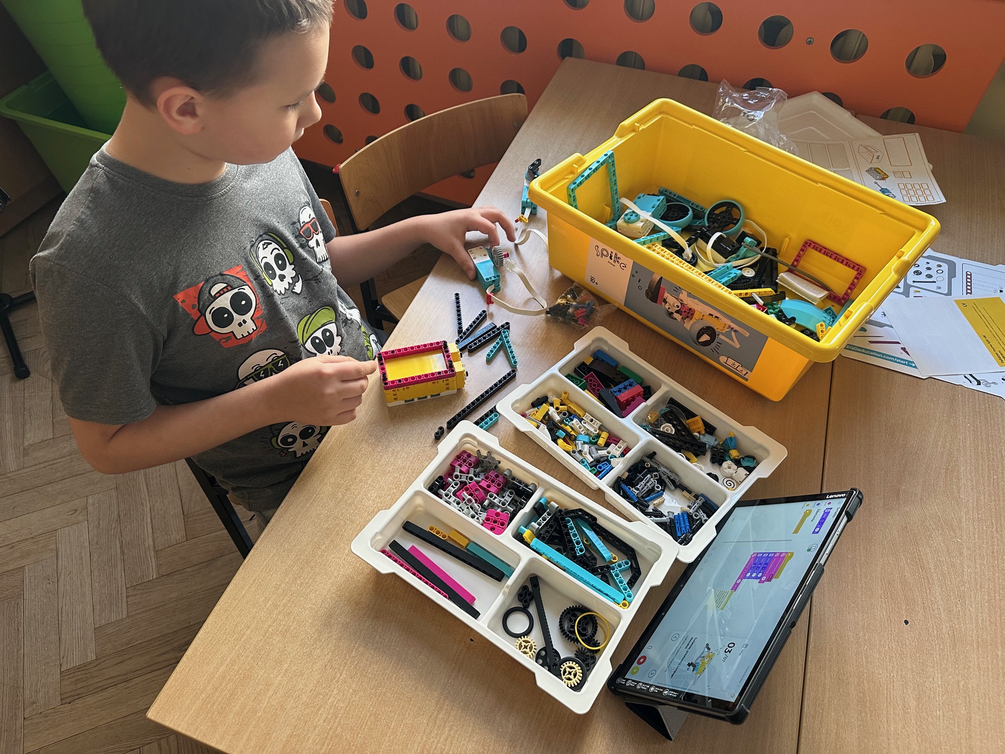Kolejne warsztaty robotyczne dla klas czwartych połączyliśmy z Dniem Dinozaura. Uczestnicy zajęć, używając zestawów Lego Education Spike, skonstruowali robota podobnego do dinozaura, który wykonywać miał jak najdłuższe skoki. Super zabawa!